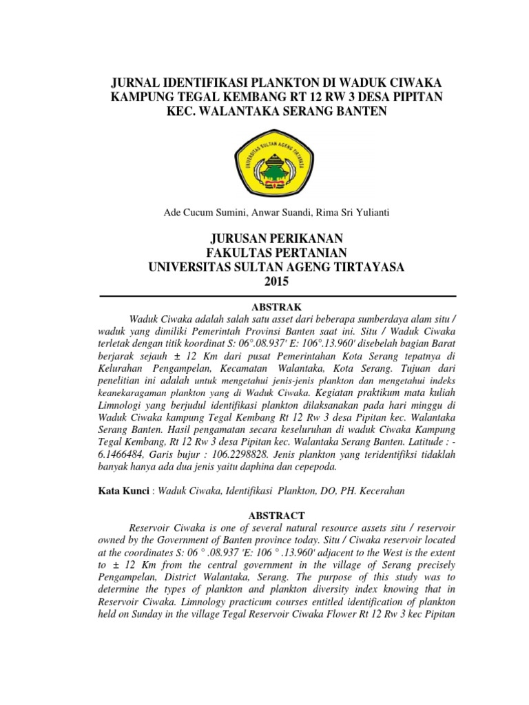 Identifikasi Plankton Di Waduk Ciwaka Kampung Tegal