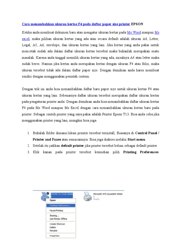 Cara Menambahkan Ukuran Kertas F4 Di Excel Dan Word