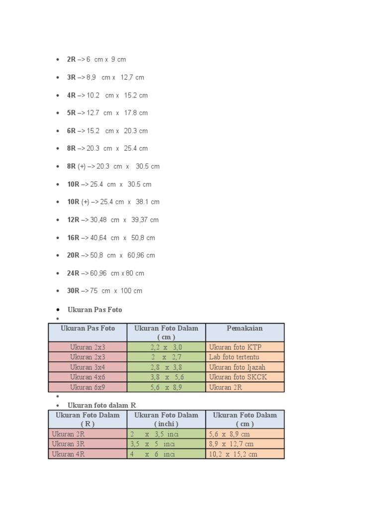 Daftar Ukuran Foto 2r 3r 4r 5r 6r 8r 10r Hingga 30r