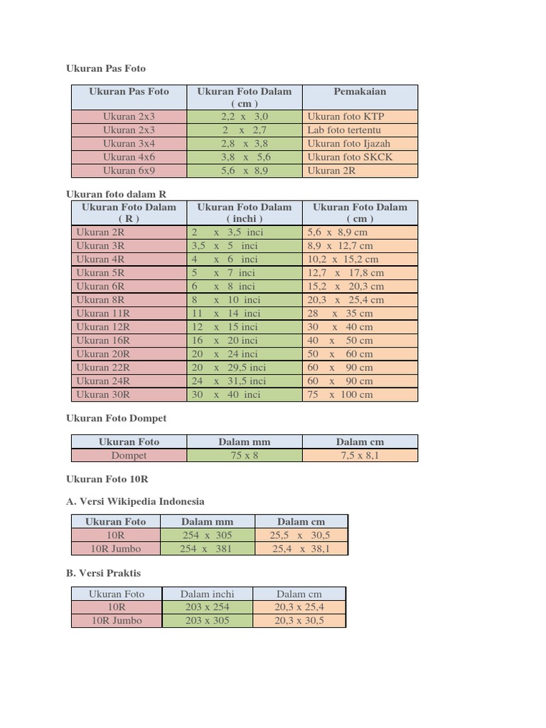 Foto Ukuran 10r Dengan Beberapa Versi Ukuran Satuan Ukuran