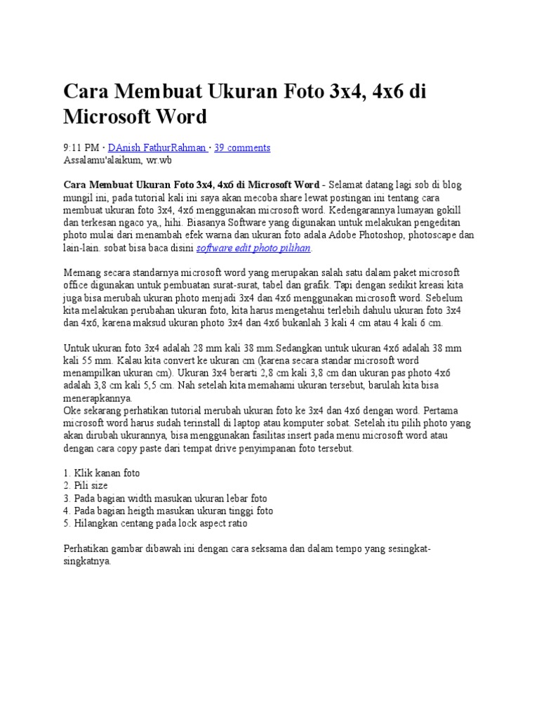 Cara Merubah Ukuran Foto Menjadi 3x4cm Dan 4x6cm Di Word