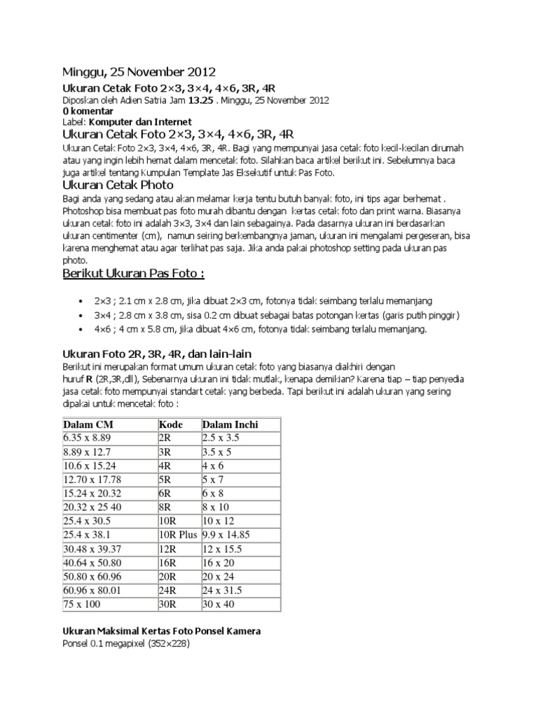Macam Macam Ukuran Foto Pdf Document