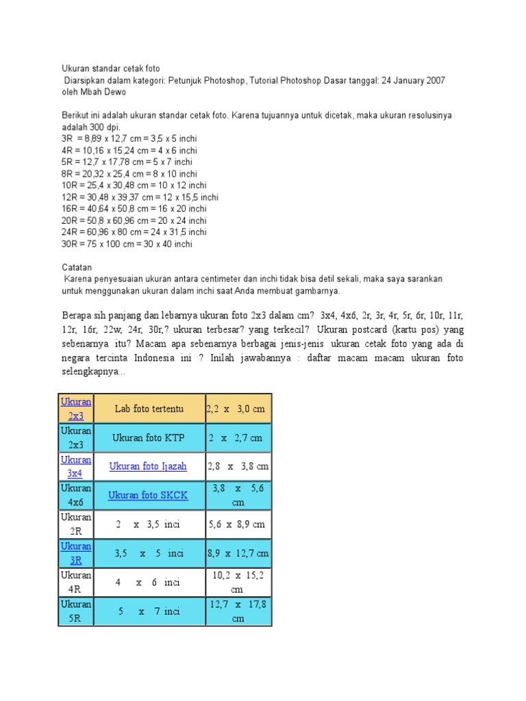Ukuran Foto 2x3 Cm 3x4 Cm 4x6 Cm 2r 3r 4r 5r 6r 8r