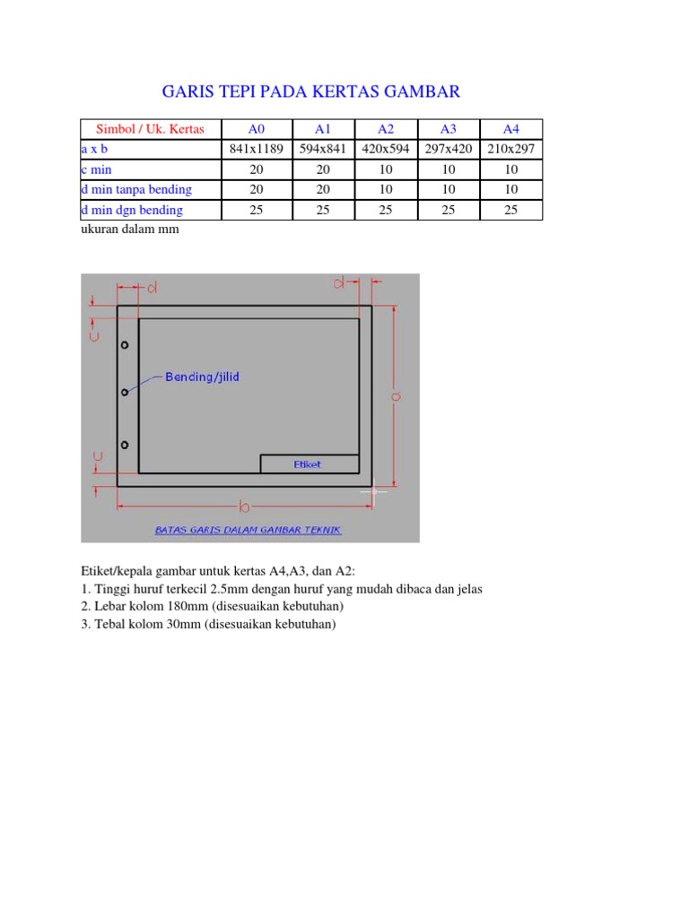 Gambar Teknik Standar Kertas Dan Tata Letak