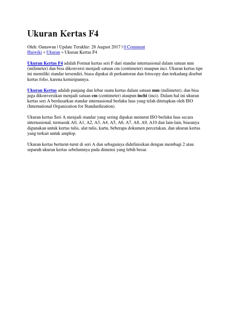 Ukuran Kertas F4 Dalam Cm Inci Mm Wixapedia