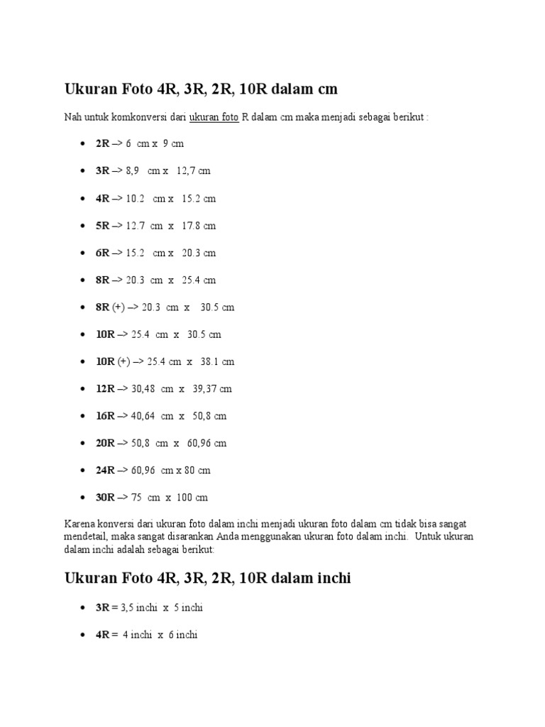 Cetak Ukuran Foto 4r 12r Jika Diubah Dalam Satuan Cm Mm