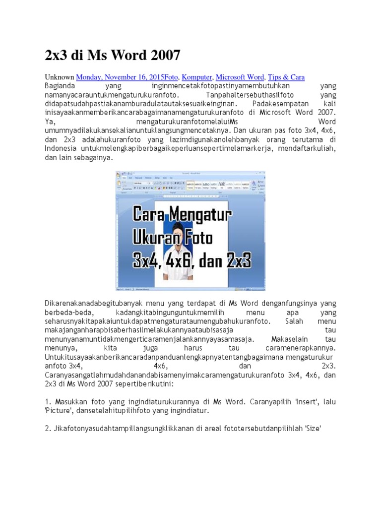 Cara Membuat Foto Ukuran 2x3 Word Docx
