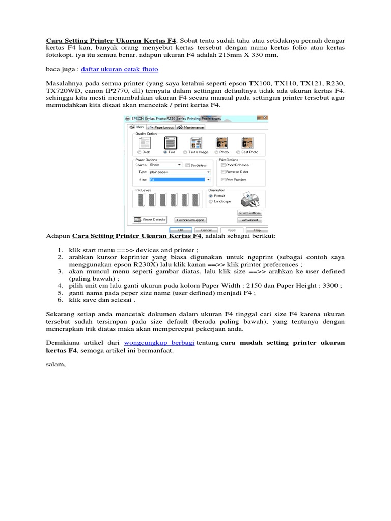 Cara Menambahkan Ukuran Kertas F4 Pada Printer Epson Andry