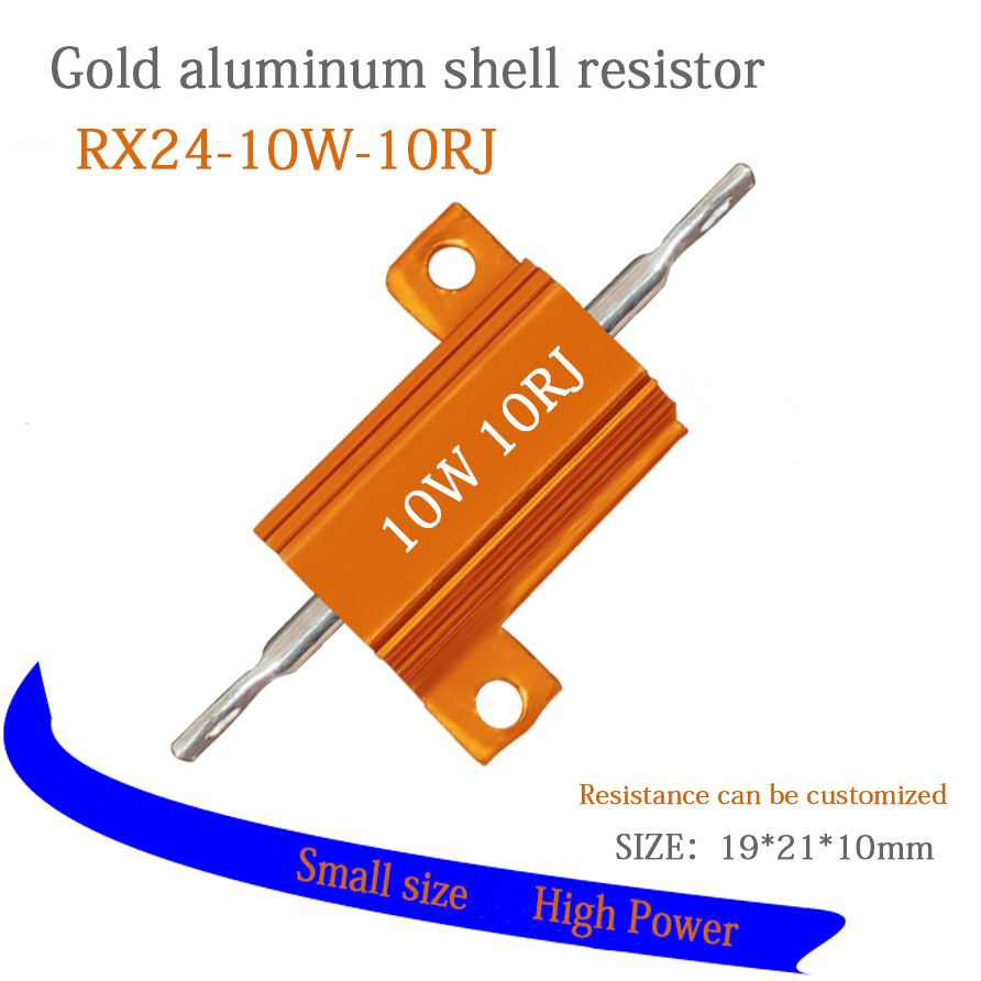 10 Pcs Rx24 10 W 10r 10rj Logam Aluminium Kasus Daya Tinggi Resistor Emas Logam Shell Kasus Resistensi Heatsink