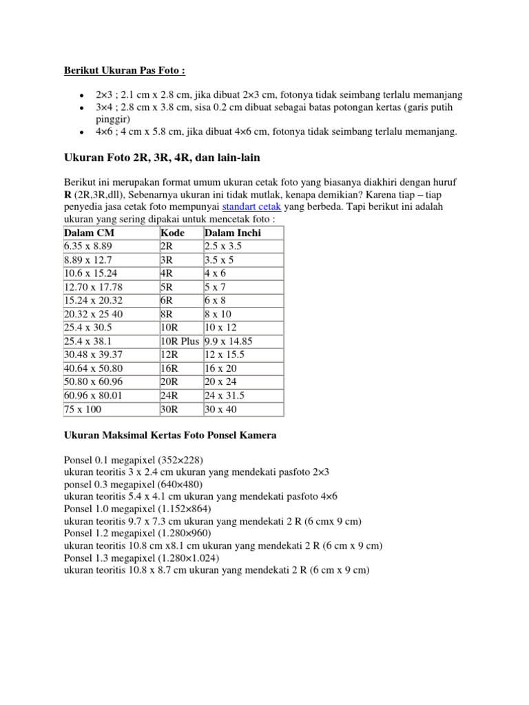 Ukuran Foto 2x3 Cm 3x4 Cm 4x6 Cm 2r 3r 4r 5r 6r 8r